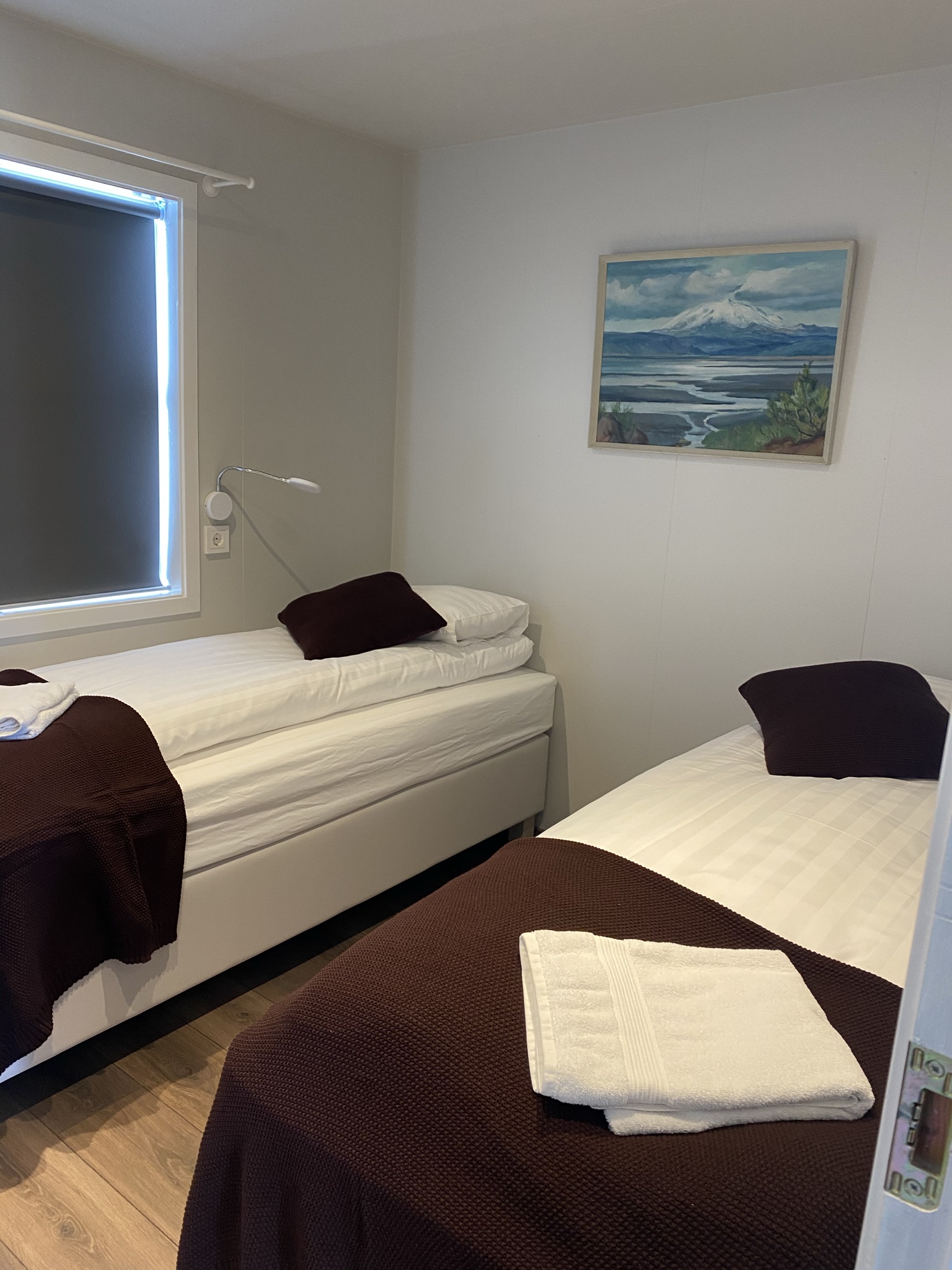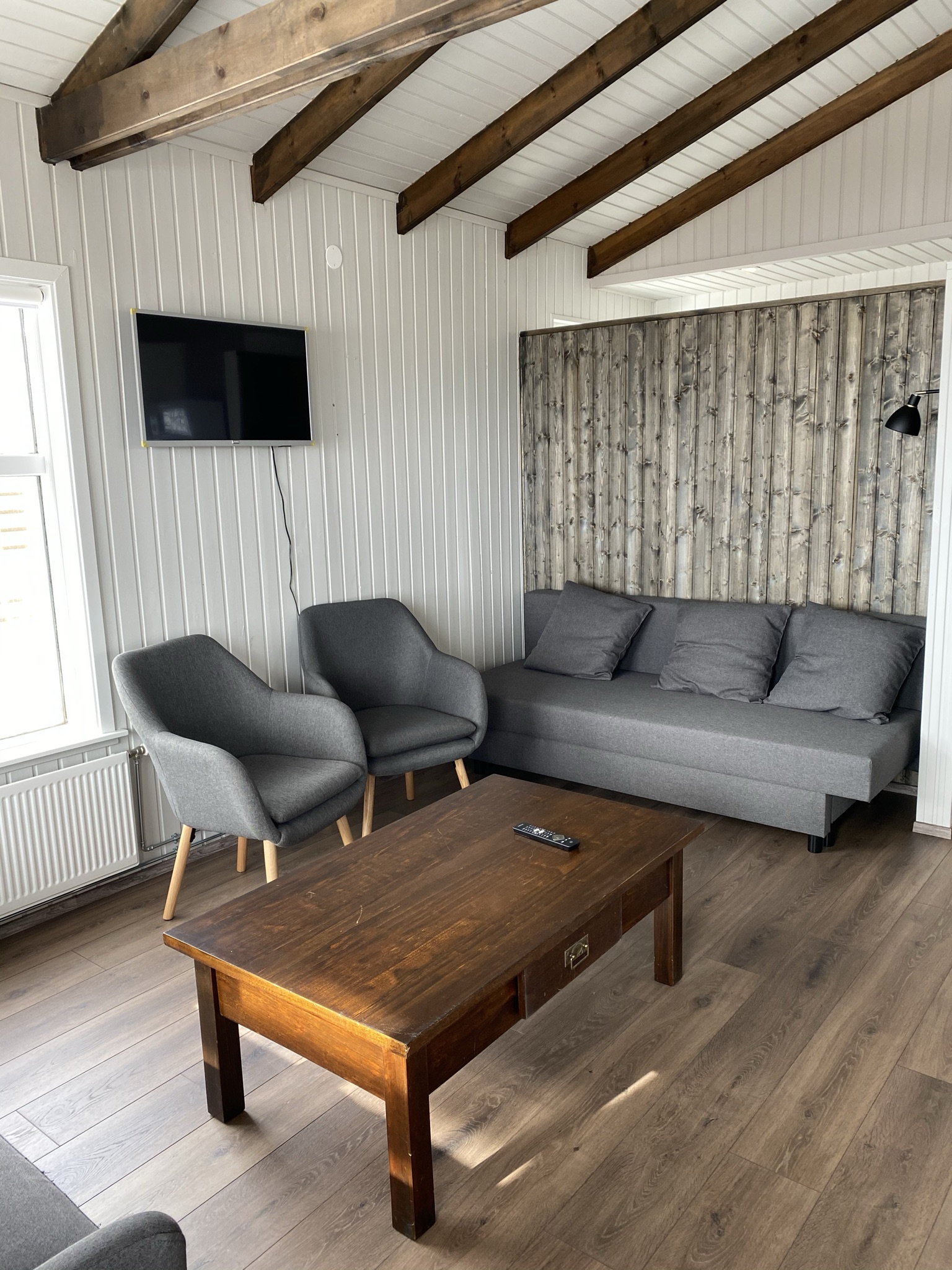 The cottage has two bedrooms plus a sleeping sofa in the living room. Bedrooms can be made up as double or twin.